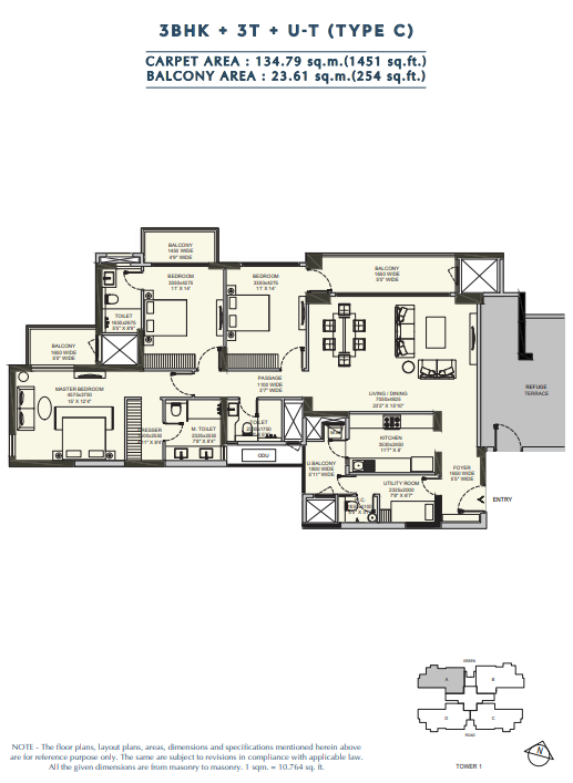 Typical Floor Plan of Tower-1 (Refuge Floor)