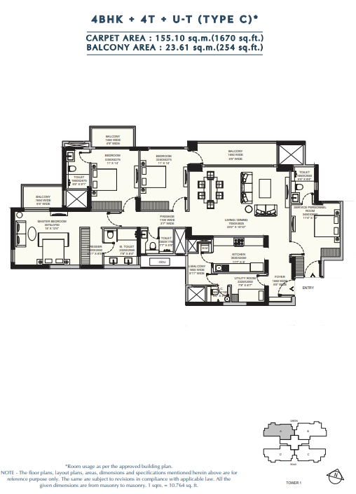 Typical Floor Plan of Tower-4 ( 34th & 35th Floor)