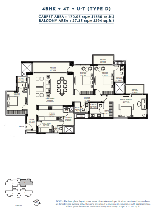 Typical Floor Plan of Tower-1 (Typical Floor)