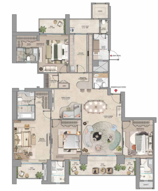 3962 sq.ft | 2100 sq.ft | 374 sq.ft | 5 & 6 | Rs. 9.59 Cr* |